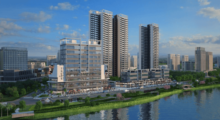 建筑与社区:住宅采用 2 梯 4 户设计,楼栋布局充分考量江景资源,实现 “户户朝南、头排瞰江” 的居住体验。社区以 “一轴一环多节点” 打造立体情景园林,“一轴” 为中庭景观主轴,涵盖儿童乐园、运动健身区、篮球场等全龄配套;“一环” 为环形跑道,与外部 11 公里滨江景观带无缝衔接,拓展休闲活动空间。作为片区首个商业综合体,项目还规划滨江风情体验式商业街区,集办公、休闲、娱乐于一体,填补区域集中式商业空白。