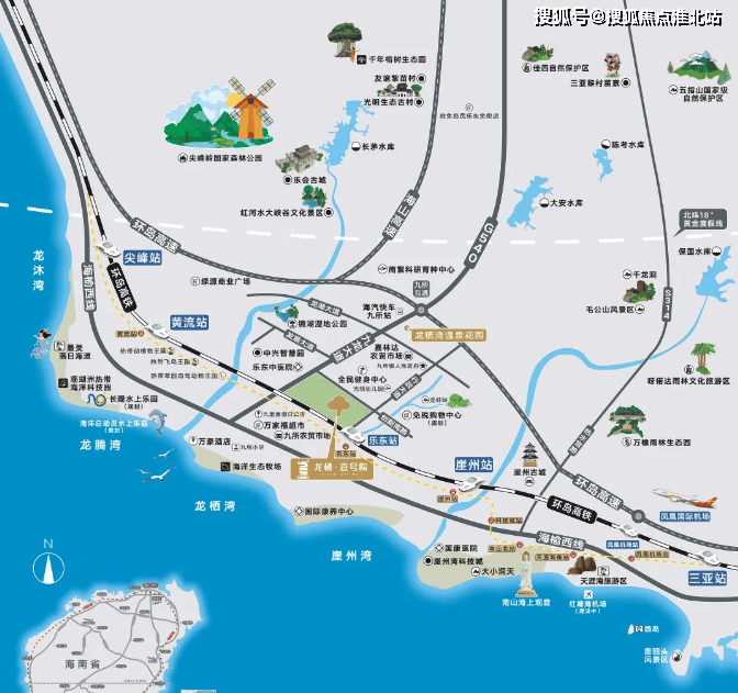 休闲配套:项目南侧是高铁站前广场和九所湿地公园、北侧是九所镜湖生态湿地公园,西侧距离海边仅 5 公里,35 分钟内可到达南山寺、天涯海角、大小洞天、尖峰岭国家森林公园等著名景点。