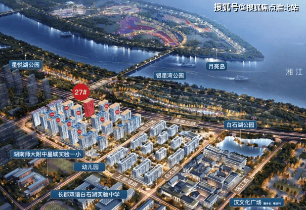 景观资源优越:项目独揽约 1 公里的黄金江岸线,所有住宅沿潇湘大道一字排开,无高层建筑遮挡,可享受开阔的瞰江视野。此外,江畔的银星湾公园、白石湖公园与项目一路之隔,步行数百米可登上月亮岛,往西南还有汉王陵公园和约 6400 亩的城央绿肺谷山森林公园。
