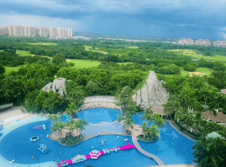 休闲:多座国际标准高尔夫球场(如黑石球场)、火山温泉谷、华谊冯小刚电影公社;社区内热带园林、泳池、健身设施齐全;