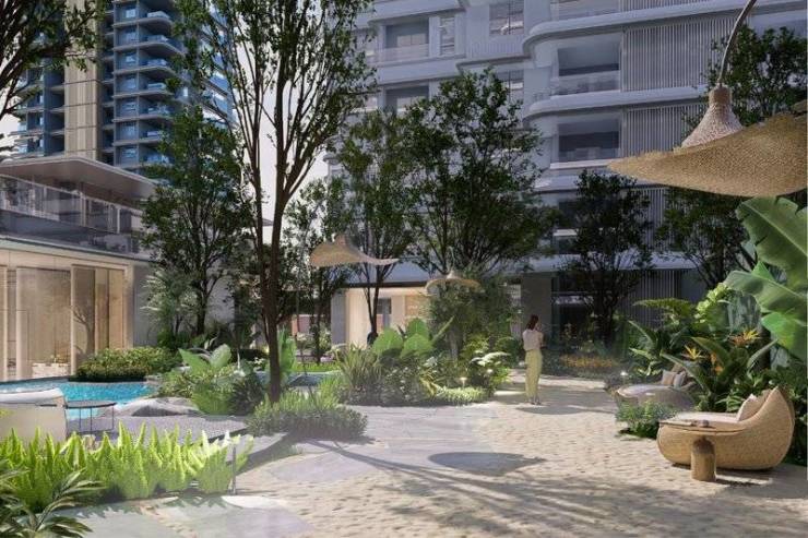 小区配套:社区内部规划了林下泳池 CLUB、自然 HUB、檐下 LOUNGE 等功能区域。林下泳池秉承热带隐奢酒店泳池场景美学,设置休闲廊亭、躺椅等,还规划了亲子按摩池、家庭泳池等分区;自然 HUB 甄选百余种热带花果树木,打造林下休憩空间,嵌入沙坑、叠水与丛林。