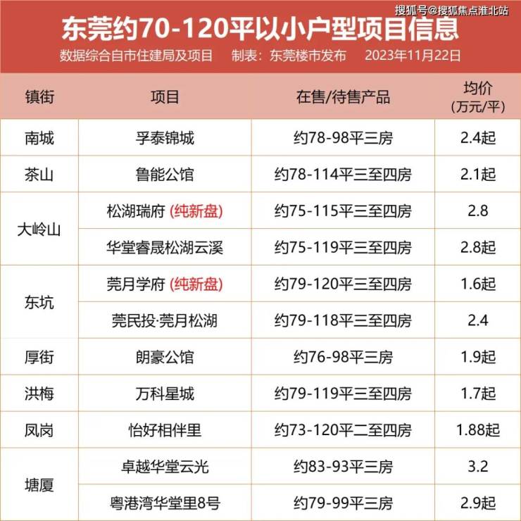 除松湖瑞府外,目前东莞有11个新盘,将最小户型面积压缩至80平以内、最大户型压缩在120平以内。
