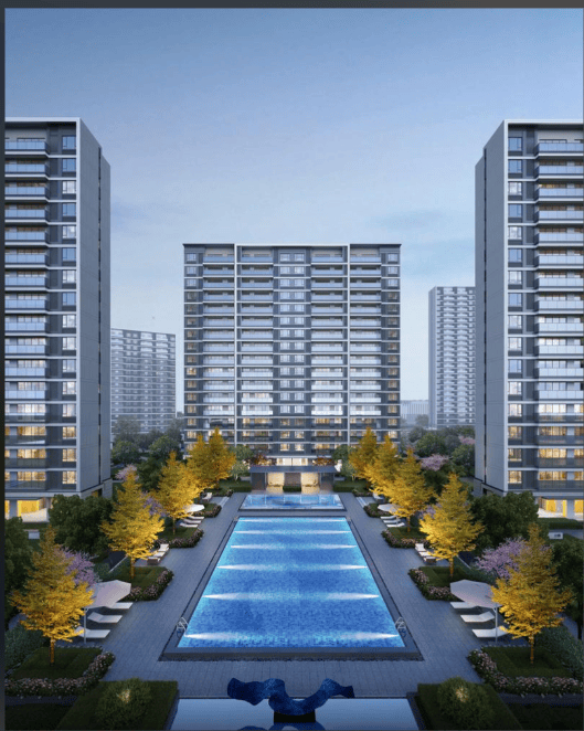建筑设计:采用现代滨水美学设计,建筑外观时尚大气,21 幢高层住宅呈三轴对称分布,形成恢弘的视野景观画面。