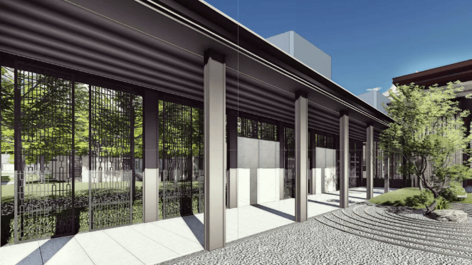 东方美学园林:规划约5.3万㎡的东方美学园林,秉承“建筑在园林中,园林在建筑中”的设计理念,打造“1轴3中心”景观体系,融入诗意与自然元素,营造四季诗意生活。