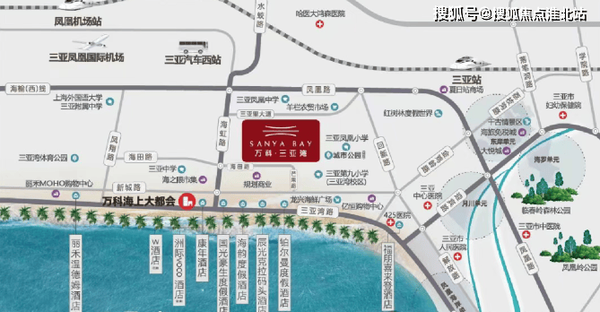 休闲配套:项目紧邻三亚湾,坐拥 22 公里椰梦长廊的绝美海景,东侧约 1 万方市政湾心公园,由万科代建,公园规划包括健康步道、儿童活动区、复合型球场等。