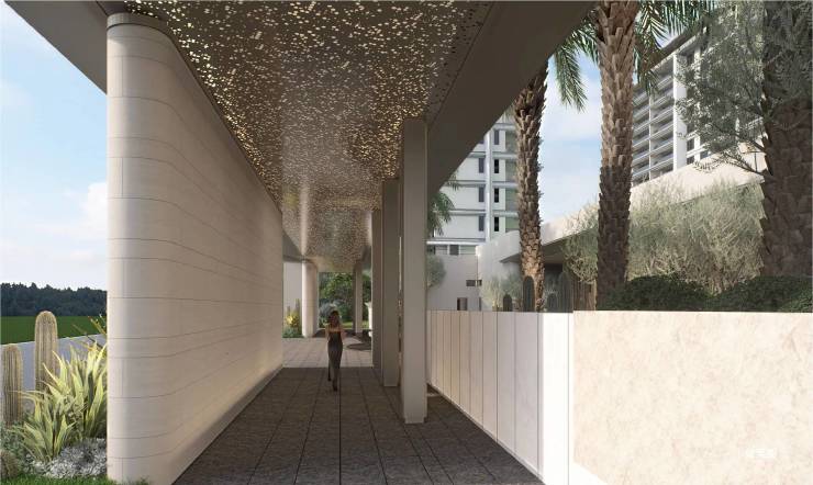产品亮点:第四代住宅,铝板外立面,户户带通水电的入户花园 / 空中庭院;纯板式一梯一户,层高 3.15–3.3 米(高于常规);风雨连廊串联社区,柔性开放社区设计。
