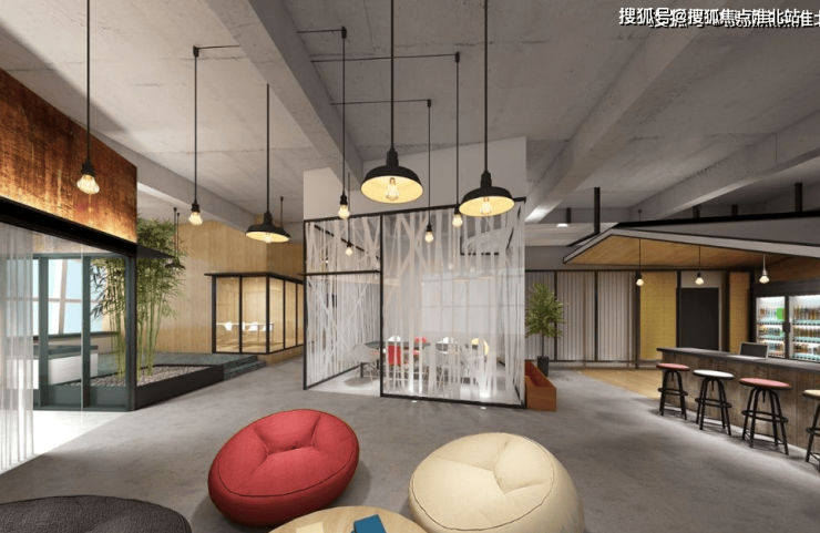 由四个不同颜色集装箱组合而成的会议室,免费提供4个可以容纳10~20个人的小型会议。