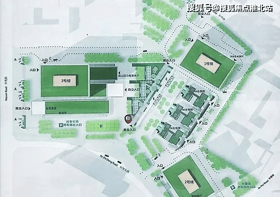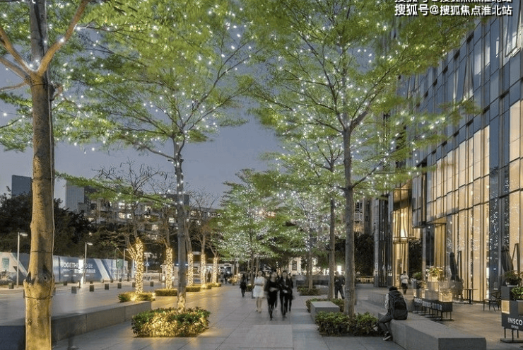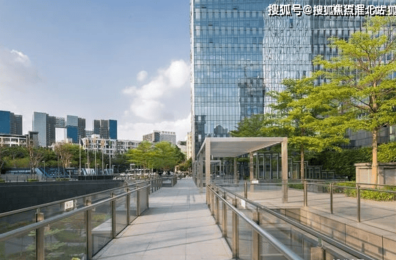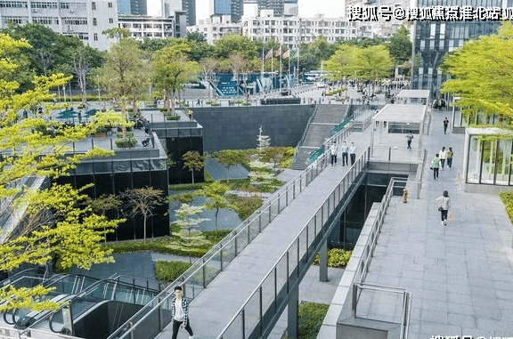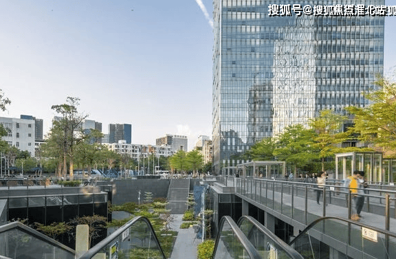 讯美科技广场由三栋主楼和两栋裙楼商业组成,园区中间由下陷商业广场连接。