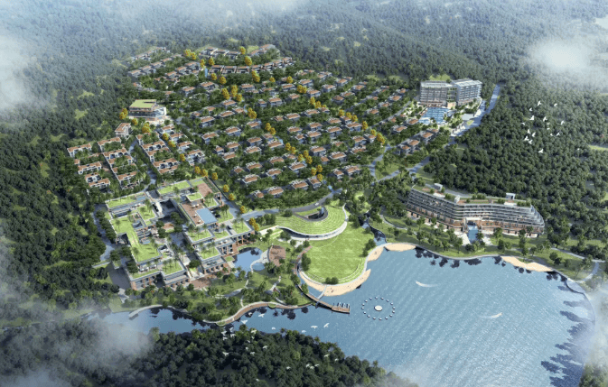 规模:总占地约171亩,总建筑面积约8.23万㎡,容积率仅0.48,规划总户数190户,为纯山地墅区。