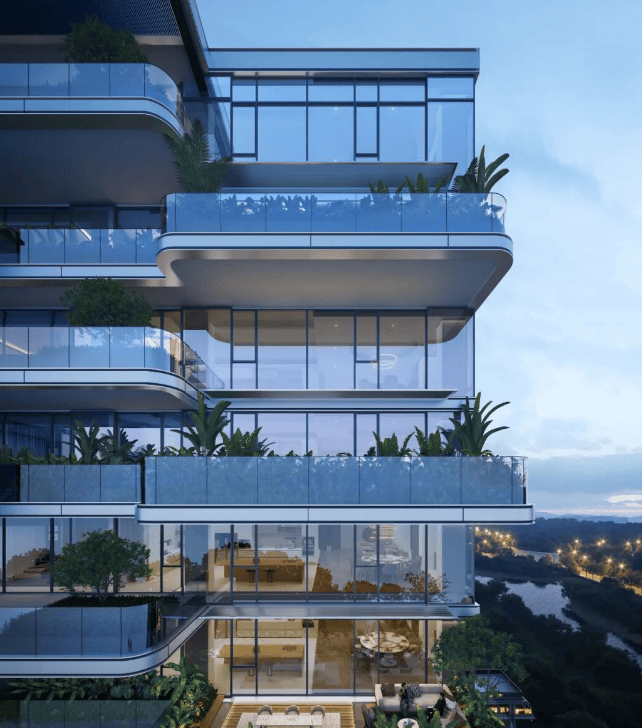 建筑与园林:现代极简风格立面,搭配石材、铝板与玻璃;六重度假主题园林,如“水乡记忆”“秘境花园”等。