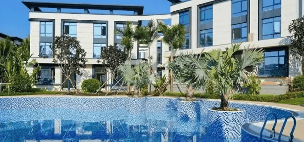 观海双拼:建面 75-150㎡,赠送 50-120㎡庭院及温泉泡池,实得单价低至 1.3 万元 /㎡,适合家庭旅居。