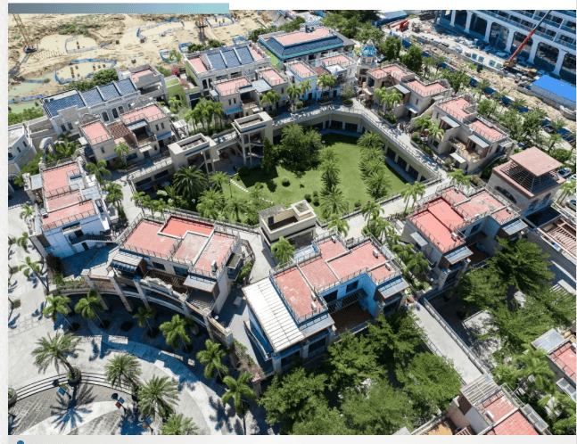建筑风格:以南洋风情为特色,复刻民国时期的南洋骑楼建筑,色彩浓郁、装饰精致,街道两旁棕榈成行,藤萝雨树成荫,营造出悠闲的度假氛围。