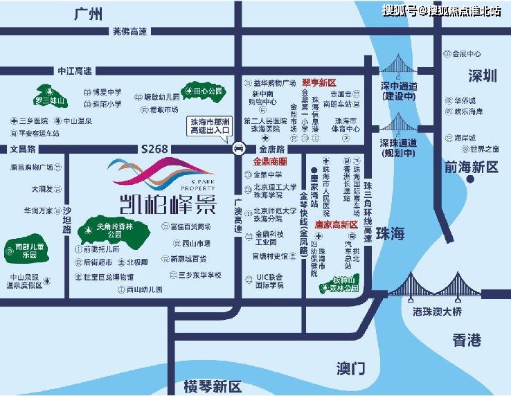 交通:多维立体交通路网:深中通道(建设中)、深珠通道(规划中)、港珠澳大桥(已通车)、广珠西线、京珠高速、珠海轻轨北站。实现与大湾区城市的互联互通