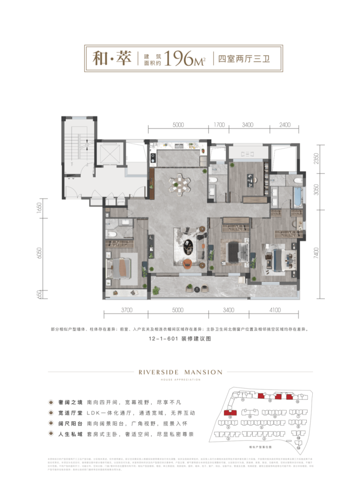 得力·和麓园的魅力,还来自于它高端改善的产品定位。其主力户型143㎡、196㎡为四房两厅三卫设计,实现了功能改善和尺度改善的兼顾,完美契合二孩、三代同堂家庭的需求,堪称高阶人物收藏城市公园且同时实现品质高改生活的不二选择。