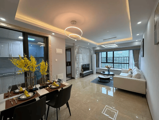 户型以92-97㎡的三房为主,采用方正布局,南北通透,采光通风良好。部分户型配备双阳台,北向生活阳台实用,南向景观阳台可观赏山景或海景,客餐厅一体设计,空间开阔,主卧带收纳功能,次卧带飘窗,满足家庭多样化需求。项目为精装交付,采用高档门窗、中空玻璃、智能密码锁等材料,社区内设置公共照明系统、太阳能储能系统,绿化率高达35%,容积率2.5,建筑密度低,人车分流设计,停车位充足,居住舒适度高。