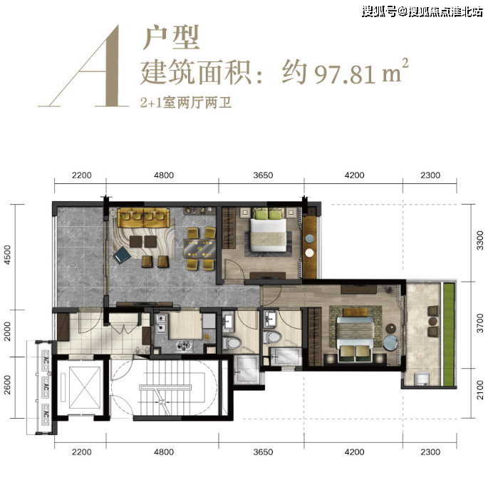 主力户型:80㎡两房、97㎡两房、110㎡三房、122㎡大三房
