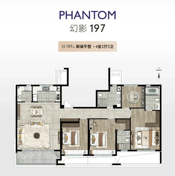 低密舒适居住:一梯一户设计,叠拼产品赠送地下室 / 露台,最高可达 200㎡,小区容积率较低,居住体验较好。