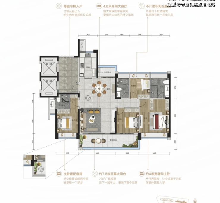 建面约165㎡四房,尊崇专梯入户,享受私密归家礼仪。南北通透方正户型,卓越宽厅设计,约4.8开间大客厅,会客亲朋尽显从容。南北双阳台带来IMAX级山景享受,约7.8米巨幕大阳台,让山景风光以“8K”级别清晰度闯入家中,景色美不胜收。