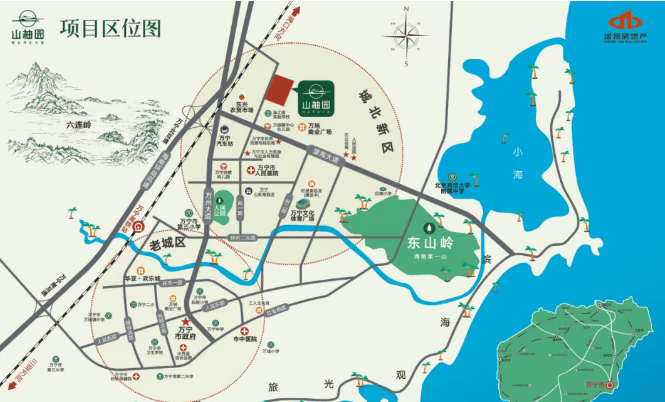 配套设施:小区内部规划有 58700 平方米园林绿化、2125 平米附属幼儿园、3800 平米超市、1000 平米业主活动中心、两个篮球场、临街商铺、泳池等。周边配套齐全,紧邻万宁高铁站 3.2 公里,万宁文化体育广场 2 公里,人民公园 2.2 公里,人民医院 1.5 公里,东山岭 3.8 公里,东星农贸市场 1.2 公里,北京师范大学附属中心 3.1 公里,小海内海 3 公里,小区门口有 3 路公交车经过学校、医院、市场和高铁站。