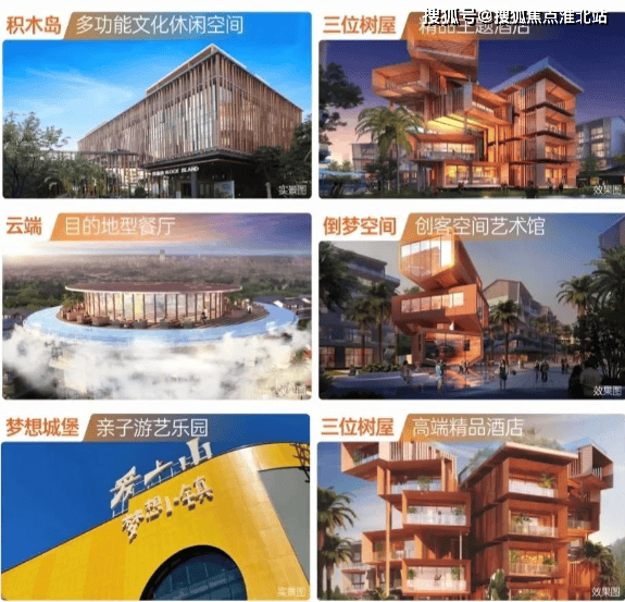 建筑风格:规划了积木岛、梦想城堡、云端、红色之恋、蓝色之恋、三位树屋、水下隐室、倒梦空间八大奇异建筑,打造科技馆、儿童乐园、婚恋主题馆、心灵修养馆等多元业态,是集网红打卡与商业场景并存的心地标。