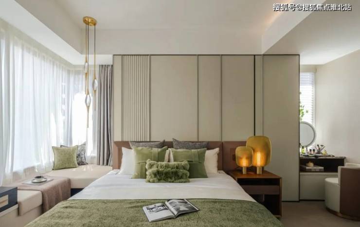 主卧套房设计,震撼拥有三面飘窗,还带有步入式超大衣帽间,阔绰的空间完全可以设计一个独立的化妆台,这样的高配,一整个爱了。