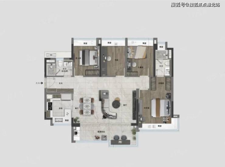 LDKB一体化、创新大通厅的设计,尺度感堪比市面上建面约200㎡的户型。这个阔度,让你无论是家族欢聚还是宴请宾客,都非常从容,尽享居家生活的多姿多彩。