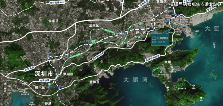 距惠州南站约7km(直线距离),2站深圳北,3站福田,双城生活轻松转换。约3个红绿灯即达澳头高速出入口,直上惠大、沿深高速,湾区精彩自由往返。