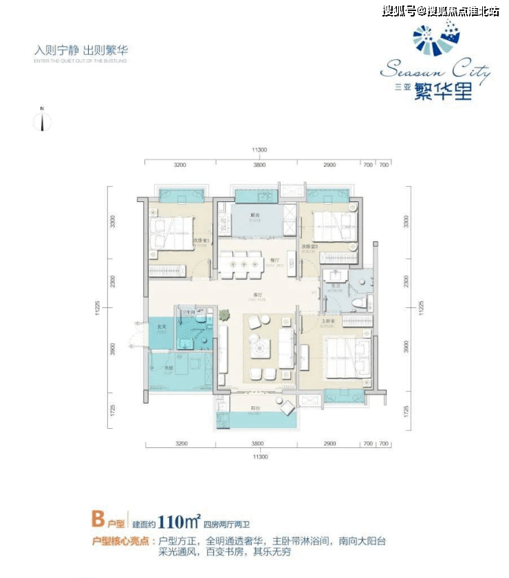 三亚繁华里位于三亚市天涯区海润路与工业路交汇处,毗邻环岛高速、三亚高铁站、凤凰国际机场等及交通枢纽。形成“海陆空”立体交通网,可快速通达岛内外,通过“四纵两横”的道路网,可便捷通达市区各区域。项目总占地面积30亩,共两栋,均为23层,2梯4户,在售户型为84㎡的三居和113-121㎡的四居。一户一证,户型方正、通风采光效果好,空间利用率很高。