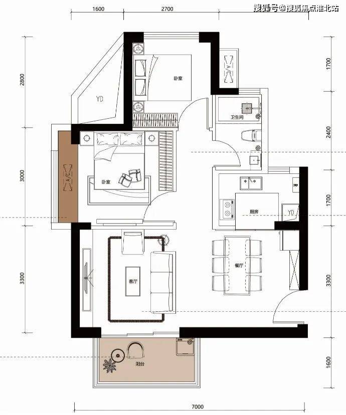 住宅产品:73㎡2房、90-95㎡3房、116㎡3房、136㎡4房