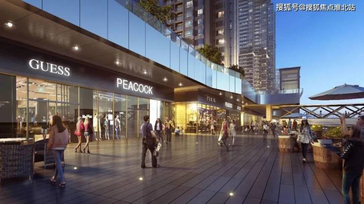 空中花园层盖下的公共商业空间,由标志性的交通核心进行串联——交通核整体形态通过一条似中国结的飘带,将原本复杂的动能、密集的出入口,多标高的平台,突兀的建筑体量包容一体,并形成半室外的遮阳遮雨空间,让归家、购物、求学的路更舒适,享受云社区带来的美妙时光。