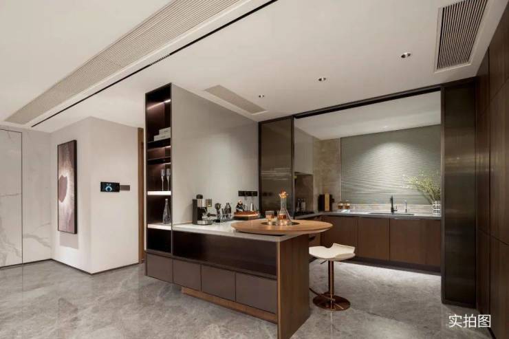 还有精工细致的不锈钢踢脚线、极具质感的不锈钢+磨砂玻璃衣柜,卫生间、厨房无处不在的天然石材…...这些“武装到牙齿”的审美细节,让宁光府拥有穿越时光的卓越品味。