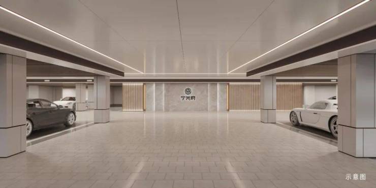 为了让项目更具高端质感,宁光府将精致奢装延伸至了地下车库,花岗石铺地+环氧地坪,局部铝板立面,每一处细节都极其苛刻,放眼整个宁波市场,都算得上是天花板级的配置。