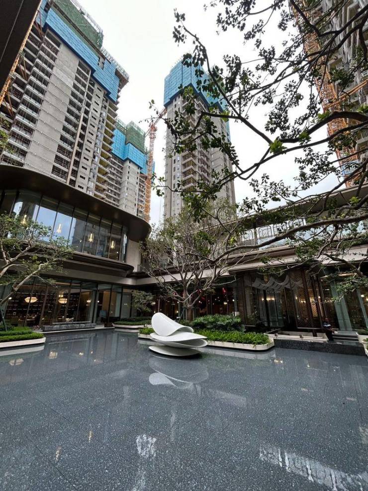 建筑风格:香槟金铝板 + Low-E 玻璃幕墙,东方禅意园林,“山 - 城 - 河” 景观对话,下沉庭院 + 星空泳池 + 全龄健身区;自带 JUN CLUB 艺术会所(私宴厅、恒温泳池、雪茄吧等)。