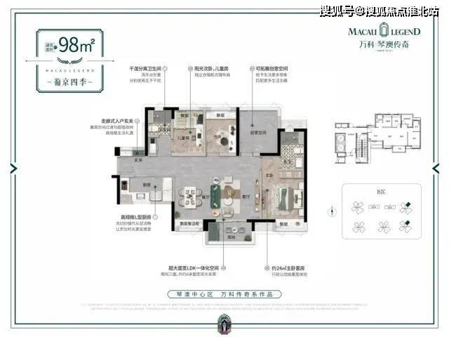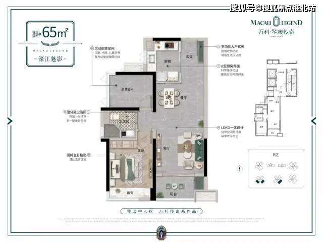 【高层住宅】:【65㎡2+1室2厅1卫】【79㎡2+1室2厅2卫】【88㎡2+1室2厅2卫】【98㎡3+1室2厅2卫】【洋房住宅】:【105㎡3+1室2厅2卫】【135㎡3+1室2厅2卫】琴澳中心区·澳门生活共同体—万科·琴澳传奇建面约65-135㎡ 高层小户/洋房顶复 项目鸟瞰效果图