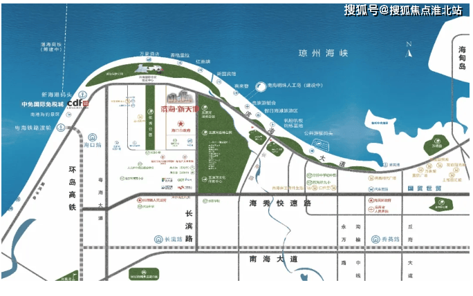 交通:周边 2km 内有 60 个公交站,紧邻滨海大道、海秀快速路等城市干道,与新海港码头、环岛高铁海口站等交通枢纽相邻。