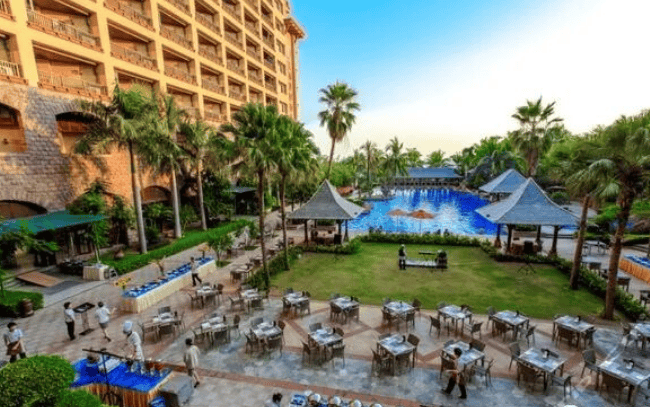 酒店设施:设有露天屋顶泳池、行政酒廊、SPA 房、乒乓球室、台球室、健身房及娱乐室等,裙楼设有餐厅、大堂吧等餐饮场所,还配备了会议室、商务中心等,满足商务会议、洽谈等需求。