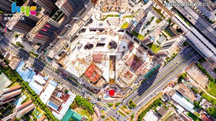 根据现场来看,海雅缤纷广场、街区、中庭等已初具雏形!