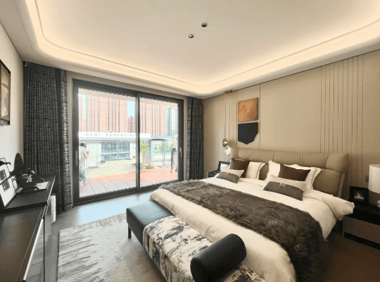 藏品级叠墅:推出建面约220-405㎡宽境叠墅,下叠带私属庭院,上叠享星空露台,平墅开间约19.2-22.8米,满足塔尖人群改善需求。