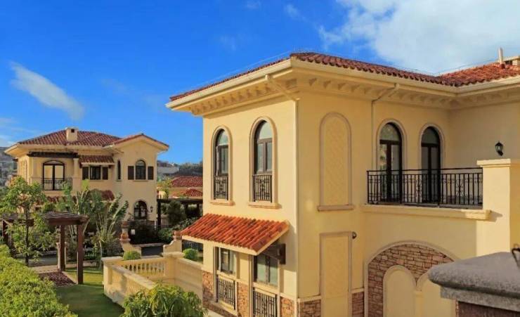建筑风格:采用西班牙风格,建筑与热带园林交织,棕榈树影摇曳,私家庭院与无边际泳池相映成趣。
