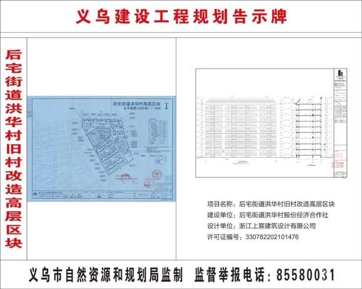 洪华村旧村改造高层区块将规划建设7栋住宅,层数为9层,此外还配套建设活动中心、文化礼堂、配电公厕等。