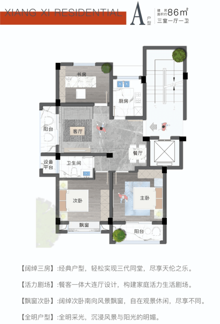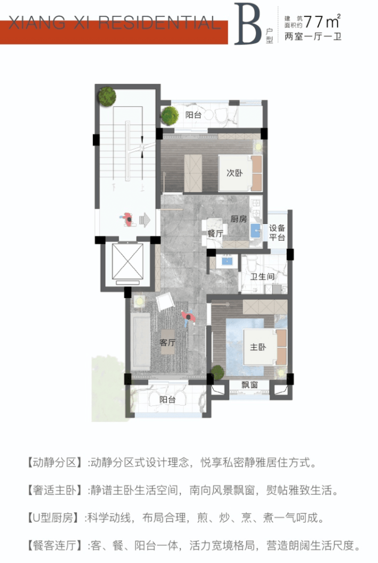 【户型面积】:高层建筑面积约77-85㎡