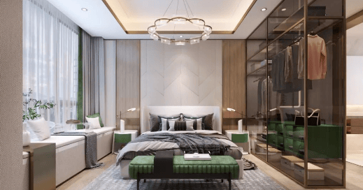 精装品质:部分房源为精装修交付,采用菲斯曼地暖、日立中央空调、西门子厨电、科勒洁具等一线品牌,全屋墙纸、定制橱柜等细节彰显品质,兼顾美观与实用性。