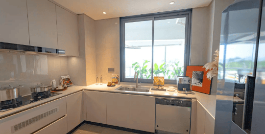 架空层设计:打造全龄共享架空层空间,实景呈现亲子时光、热力健身、休闲乐享、邻里社交四大主题功能空间,配备四点半课堂、邻里艺术中心、共享厨房等设施,营造出静谧雅致的社交氛围。