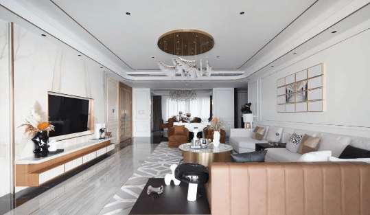 户型方正,南北通透,3.3米层高,客厅开间宽敞,部分户型带270°L型大飘窗,空间尺度感强。