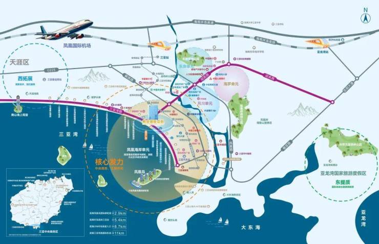 凤凰海岸单元——三亚中央商务区核芯片区,定位为旅游港自贸服务与邮轮、游艇、文化艺术综合消费区。紫金国际中心落位于此,匠造建面约6万方三亚湾芯·滨海都会综合体,实现区域城市服务、旅游文化、总部经济等产业资源全覆盖。
