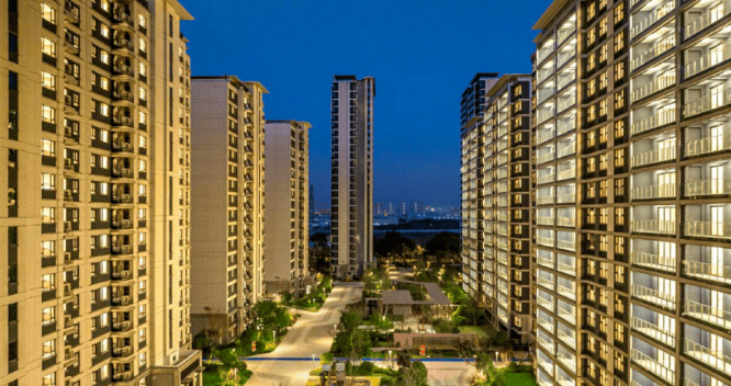 建筑与景观:外立面采用真石漆 + LOW-E 玻璃,线条简约大气。园林打造遵循中轴对称礼仪,融入水韵景观,还有随光双环跑道、百年名木隔音绿屏等,营造出一轴三进六境的归家仪式感。