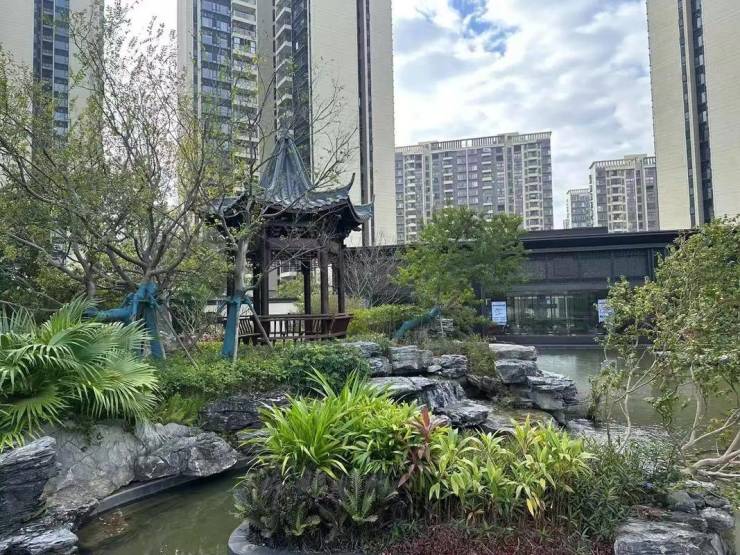 社区园林:中式园林、儿童乐园、慢跑道、泛会所等。