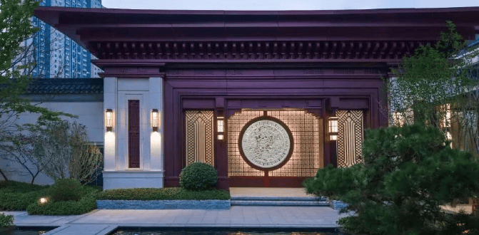 景观特色:由香山帮传人、园林匠人黄勤院长亲自操刀设计中式园林景观,八角亭、歇山亭、爬山廊等园林元素一应俱全,将江南古典园林搬入了前庭后院。