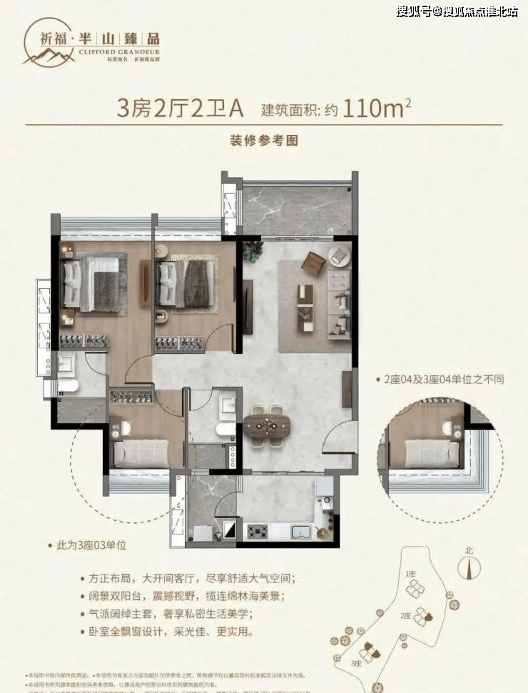 祈福半山臻品(臻品阁)户型设计匠心独运,两梯四户,高舒适梯户比,南北对流,通透舒适,采光通风皆佳,户户都能看到不同角度的山景。