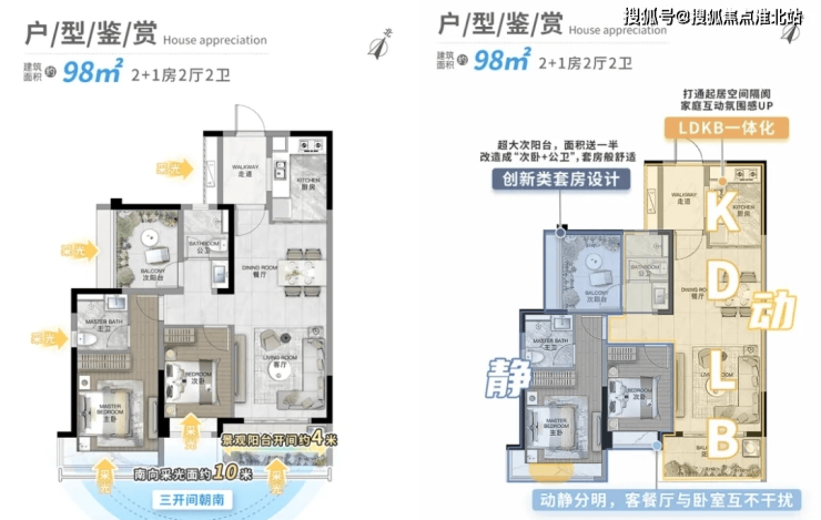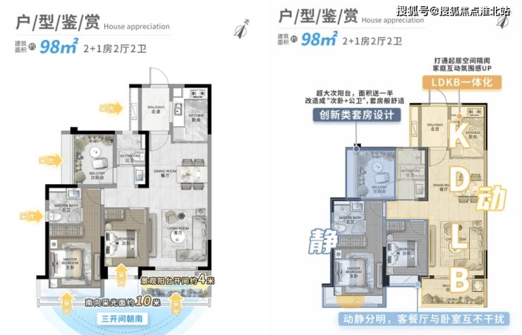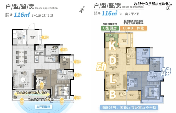 其中,116㎡户型像是98㎡户型的放大版,它的阳台与客餐厅和一间次卧相连,尺度感满满。